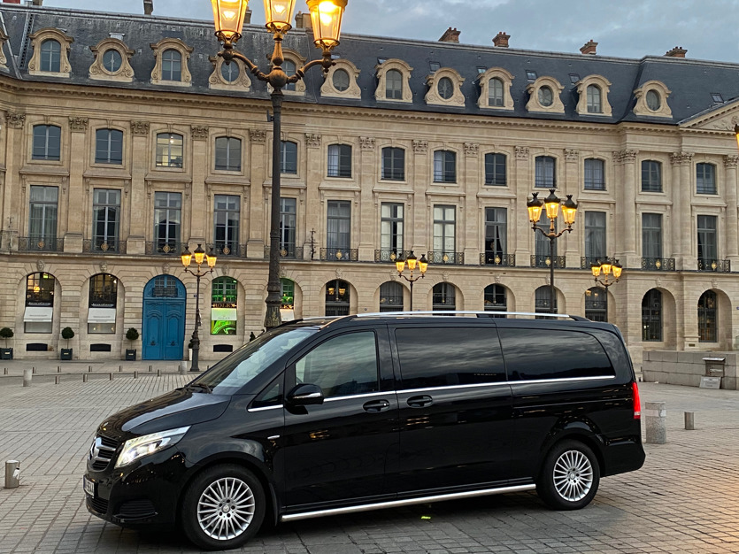 We have made a photo of one of our Mercedes minivans on Place Vendôme